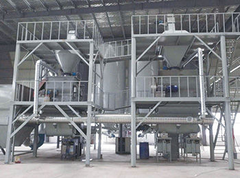 膩子粉生產(chǎn)線主要由原料儲存系統(tǒng),輸送系統(tǒng)、計量稱重配料系統(tǒng)、混合系統(tǒng)、氣動系統(tǒng)、除塵系統(tǒng)、包裝系統(tǒng)及自動控制系統(tǒng)...